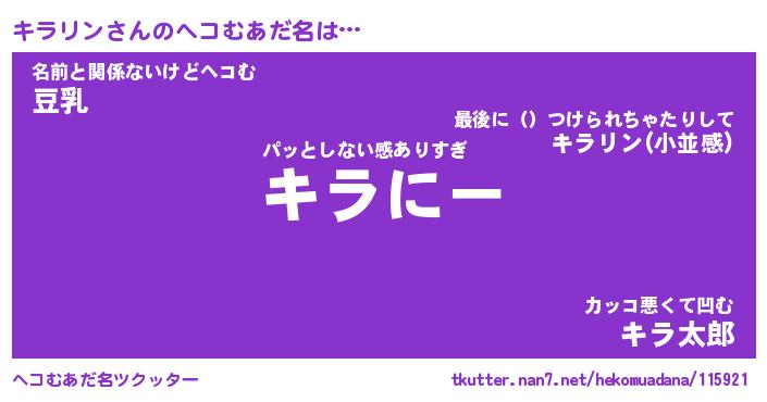 | 意味不明あだ名 | 『ペロリンキラリン』『永久保存キラリン』 |