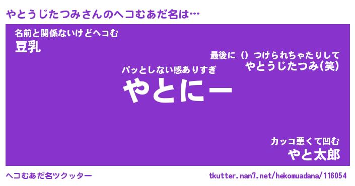 | 欧米人風あだ名 | 『マイケルやとうじたつみ』 |