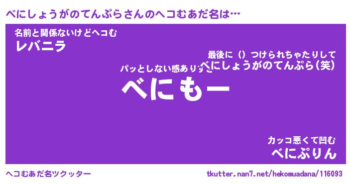| ヒーロー風カッコイイあだ名 | 『スーパーベニショウガノテンプラ』 |