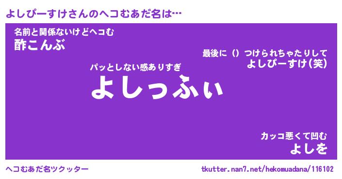 | 男性向けラノベタイトル風あだ名 | 『よしぴーすけの憂鬱』 |