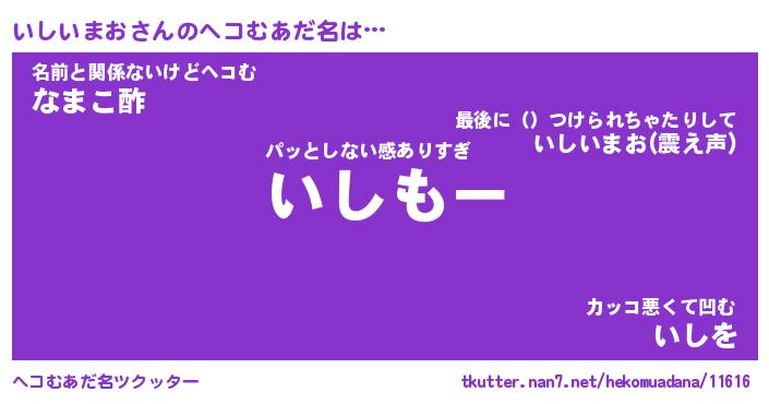 | 意味不明あだ名 | 『ペロリンいしいまお』 |