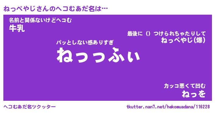 | 男性向けラノベタイトル風あだ名 | 『ねっぺやじの憂鬱』 |