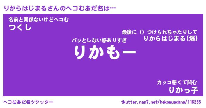 | 2回繰り返すあだ名 | 『りかりか』『りりかか』『いらいら』 |