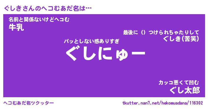 | 2回繰り返すあだ名 | 『ぐしぐし』『ぐぐしし』『ぬるぬる』 |