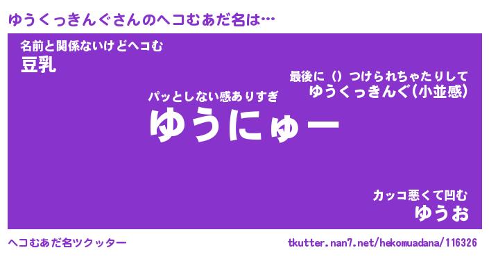 | ピコ太郎風あだ名 | 『ユコ二郎』『ピユ次郎』『ユウ太郎』 |