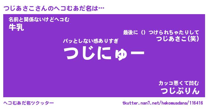 | 自動車の名前っぽいあだ名 | 『ツジティマ』『ツクア』『ツント』 |