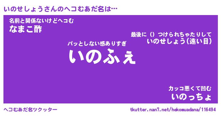 | 男性向けラノベタイトル風あだ名 | 『いのせしょうの憂鬱』 |