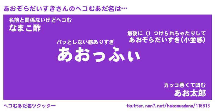| ヒーロー風カッコイイあだ名 | 『スーパーアオゾラダイスキ』 |