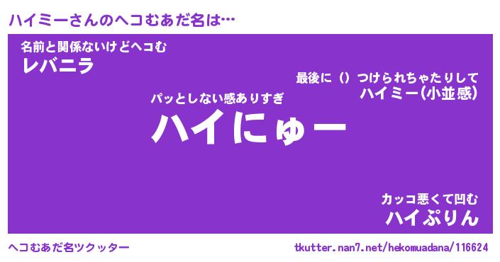 | 男性向けラノベタイトル風あだ名 | 『ハイミーの憂鬱』 |