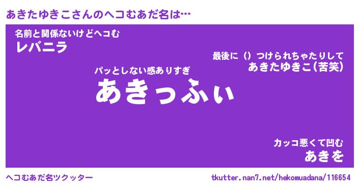 | ヒーロー風カッコイイあだ名 | 『スーパーアキタユキコ』『銀牙騎士アキ』 |