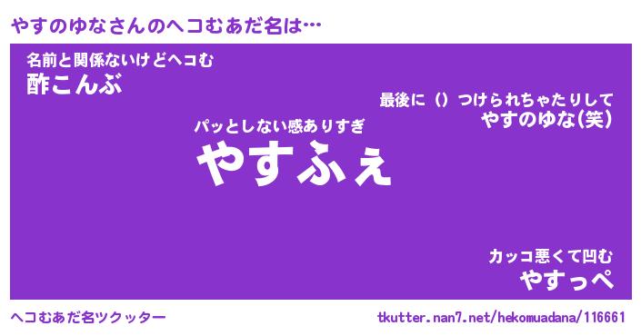 | ファンタジー風あだ名 | 『ヤスフェル』『エターナルヤスノユナー』 |