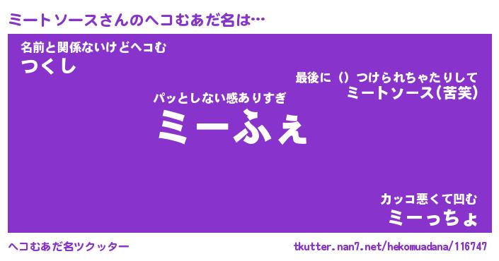 | 意味不明あだ名 | 『ペロリンミートソース』 |
