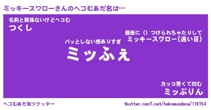 | ヒーロー風カッコイイあだ名 | 『スーパーミッキースワロー』 |