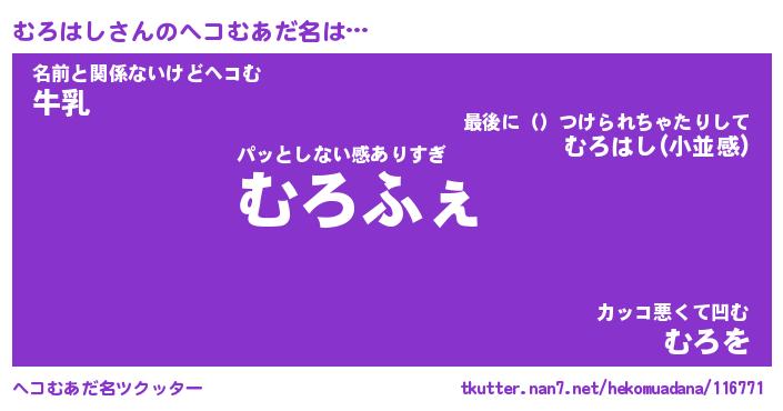 | 2回繰り返すあだ名 | 『むろむろ』『むむろろ』『あんあん』 |