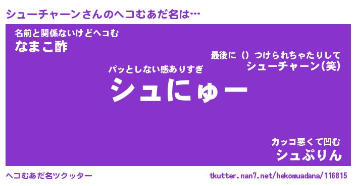 | 胡散臭い通販商品みたいなあだ名 | 『必ず成功する水晶球…その名も「シューチャーン」』 |