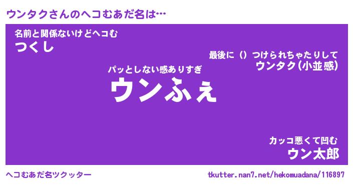 | ファンタジー風あだ名 | 『ウンフェル』『エターナルウンタクー』 |