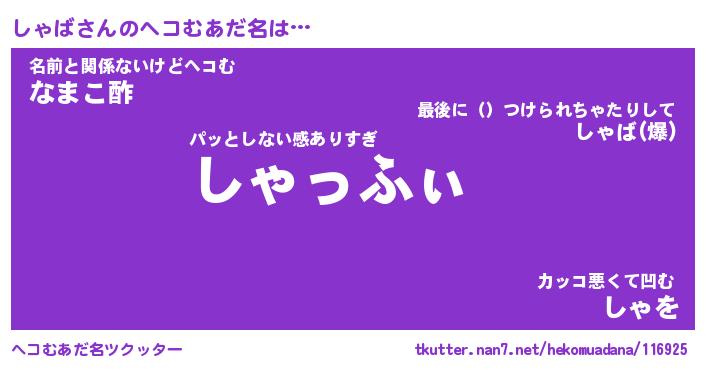 | 意味不明あだ名 | 『ペロリンしゃば』『しゃばフォーエバー』 |