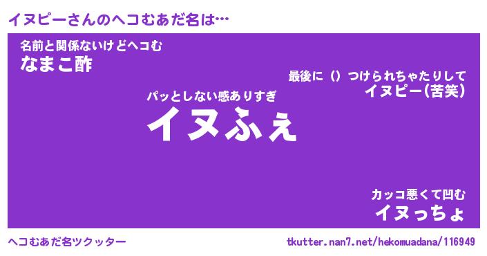 | 意味不明あだ名 | 『ペロリンイヌピー』『永久保存イヌピー』 |