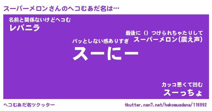 | 男性向けラノベタイトル風あだ名 | 『スーパーメロンの憂鬱』 |