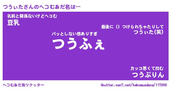 | 意味不明あだ名 | 『ペロリンつうぃた』『永久保存つうぃた』 |