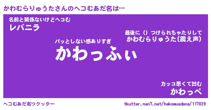 | 肩書あだ名 | 『かわむらりゅうた御曹司』 |
