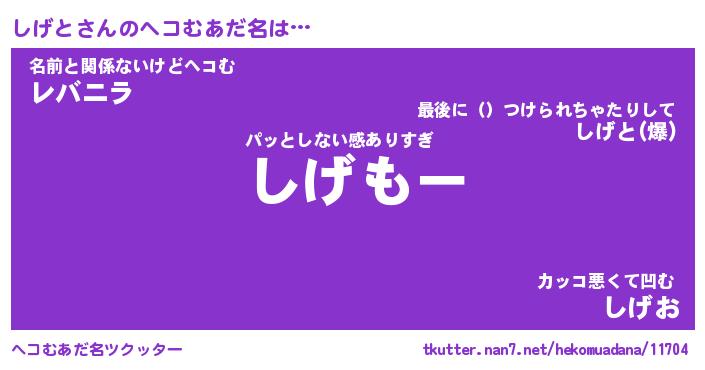 | 意味不明あだ名 | 『ペロリンしげと』『しげとフォーエバー』 |
