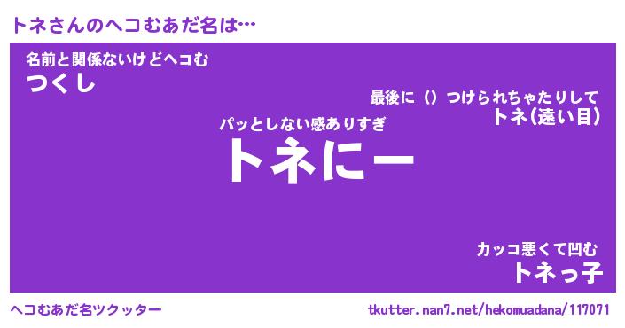 | ファンタジー風あだ名 | 『トネフェル』『エターナルトネー』 |