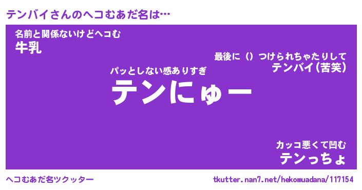 | 意味不明あだ名 | 『ペロリンテンバイ』『永久保存テンバイ』 |