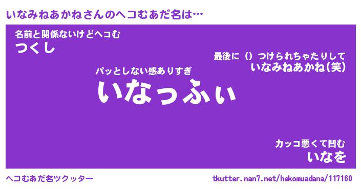| 胡散臭い通販商品みたいなあだ名 | 『億万長者になれる霊験あらたかなお札…その名も「いなみねあかね」』 |