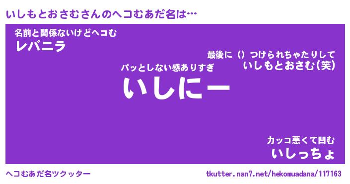 | ピコ太郎風あだ名 | 『イコ次郎』『ピイ一郎』『イシ六郎』 |