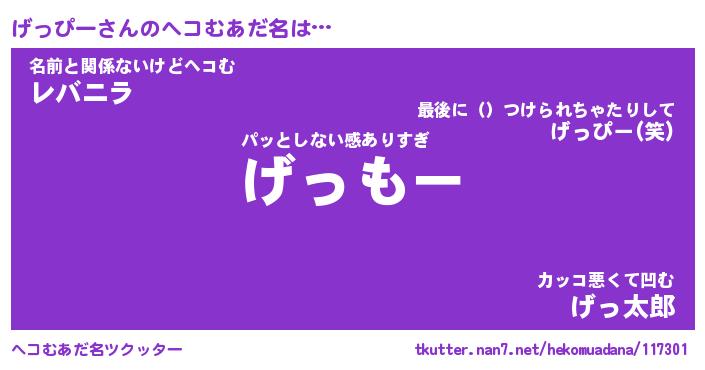 | 意味不明あだ名 | 『ペロリンげっぴー』『永久保存げっぴー』 |