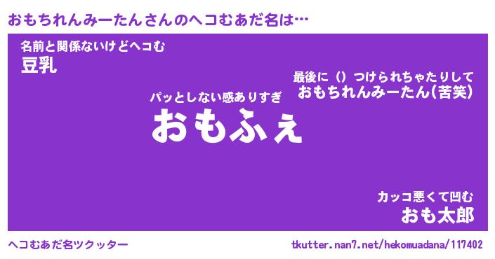 | ヒーロー風カッコイイあだ名 | 『スーパーオモチレンミータン』 |