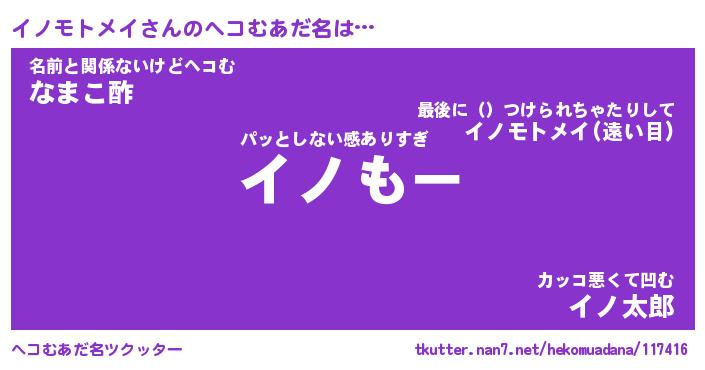 | ヒーロー風カッコイイあだ名 | 『スーパーイノモトメイ』『幻影騎士イノ』 |