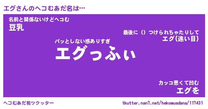 | ポケモン風あだ名 | 『エグチュウ』『エグダネ』『ヒエグ』 |