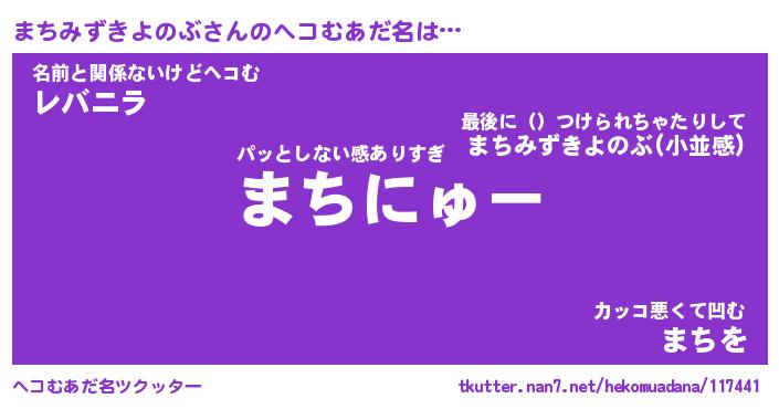 | 男性向けラノベタイトル風あだ名 | 『まちみずきよのぶの憂鬱』 |
