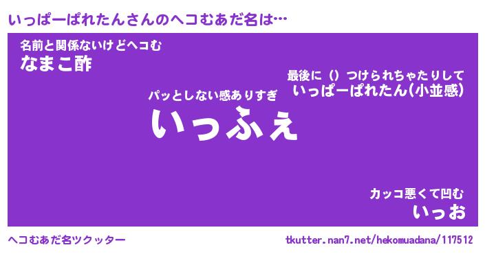 | 男性向けラノベタイトル風あだ名 | 『いっぱーぱれたんの憂鬱』 |