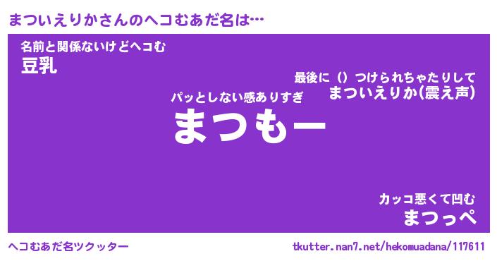 | 女子向けラノベタイトル風あだ名 | 『まついえりか姫と円卓の騎士』 |