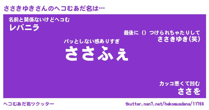 | ファンタジー風あだ名 | 『ササフェル』『エターナルササキユキー』 |