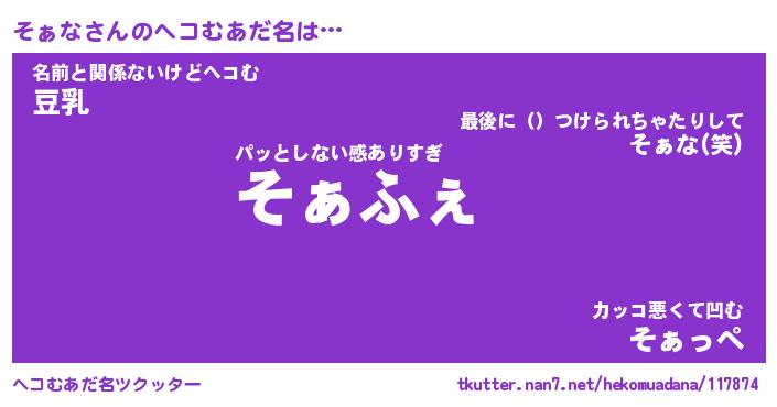 | 意味不明あだ名 | 『ペロリンそぁな』『そぁなフォーエバー』 |