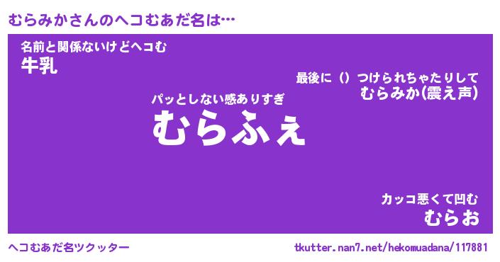 | ヒーロー風カッコイイあだ名 | 『スーパームラミカ』『天弓騎士ムラ』 |