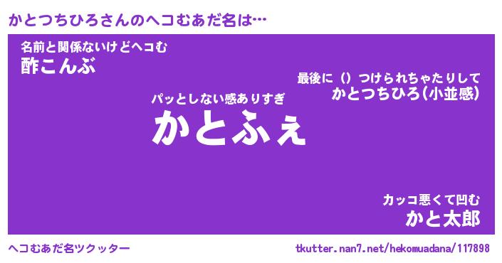 | ヒーロー風カッコイイあだ名 | 『スーパーカトツチヒロ』『暗黒騎士カト』 |