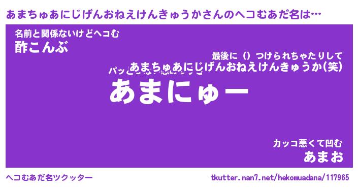 | 恥ずかしいあだ名 | 『プリティーあまちゅあにじげんおねえけんきゅうか』 |