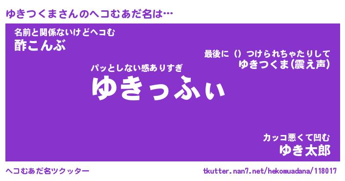 | ヒーロー風カッコイイあだ名 | 『スーパーユキツクマ』『幻影騎士ユキ』 |