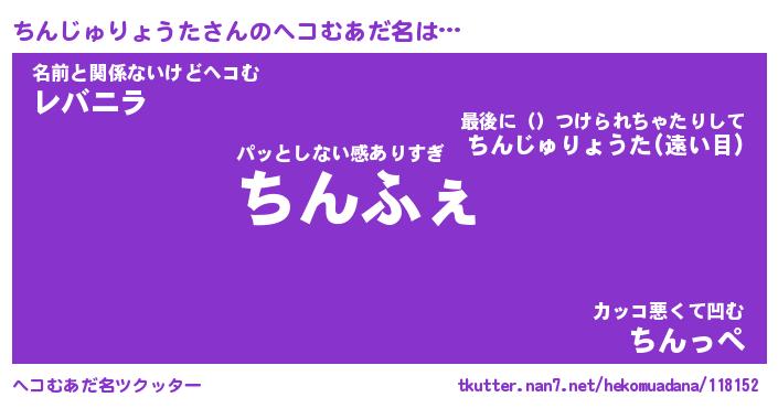 | ヒーロー風カッコイイあだ名 | 『スーパーチンジュリョウタ』 |