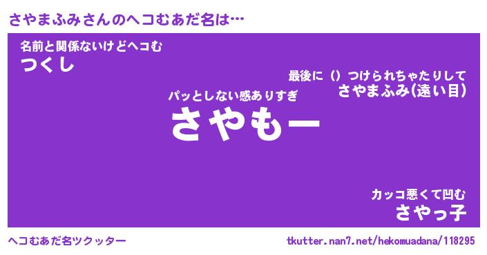 | ファンタジー風あだ名 | 『サヤフェル』『エターナルサヤマフミー』 |