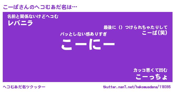 | 意味不明あだ名 | 『ペロリンこーば』『こーばフォーエバー』 |