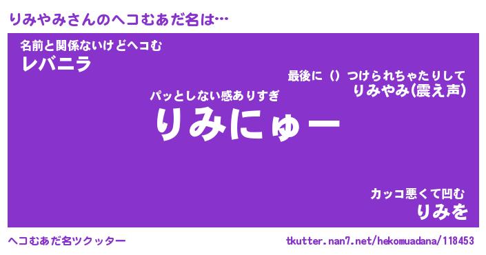 | ヒーロー風カッコイイあだ名 | 『スーパーリミヤミ』『天弓騎士リミ』 |