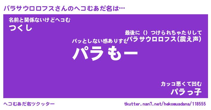 | 男性向けラノベタイトル風あだ名 | 『パラサウロロフスの憂鬱』 |