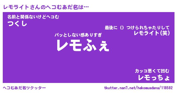 | ファンタジー風あだ名 | 『レモフェル』『エターナルレモライトー』 |