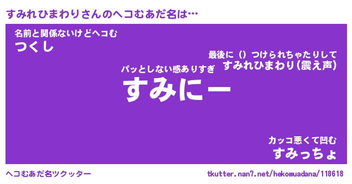 | 2回繰り返すあだ名 | 『すみすみ』『すすみみ』『ぬぷぬぷ』 |